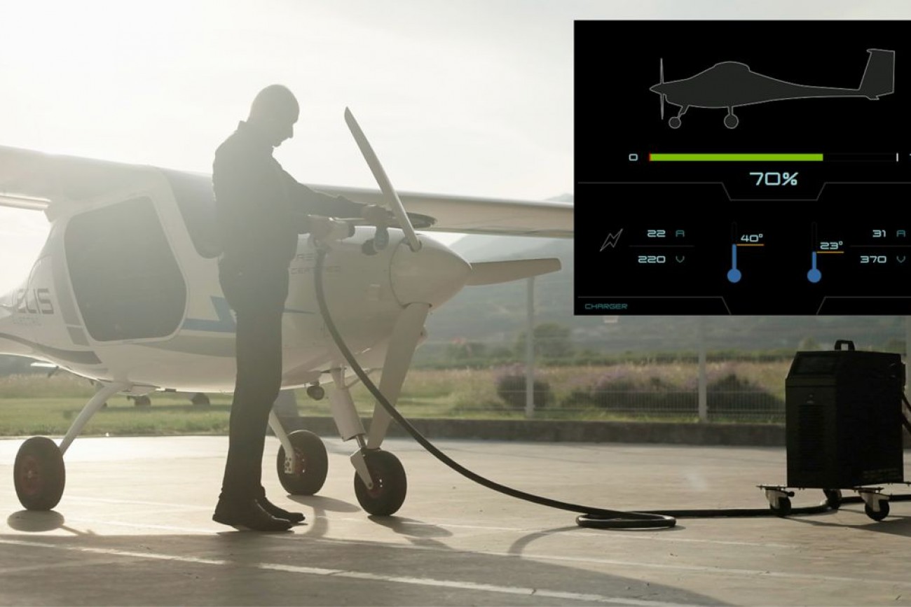 Batteries can be charged via an onboard charging port using a Pipistrel electric charger. The whole operation is overseen by the Main computer, which displays the status of all systems on the Pipistrel EPSI 570C.